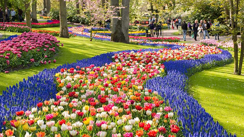 Hovedattraksjonen på vårcruiset er blomsterparken Keukenhof. Den ble opprinnelig laget som utstillingspark for de nederlandske blomsterløkprodusentene. Mellom 1. april og 15. mai står millioner av tulipaner i blomst her. Ikke alle på en gang, selvfølgelig. Parkens dyktige gartnere har sørget for at alle som besøker parken skal få oppleve blomsterprakten. Og fagkompetansen har satt nøye sammen farger som passer sammen og løkblomster som blomstrer til forskjellig tid.