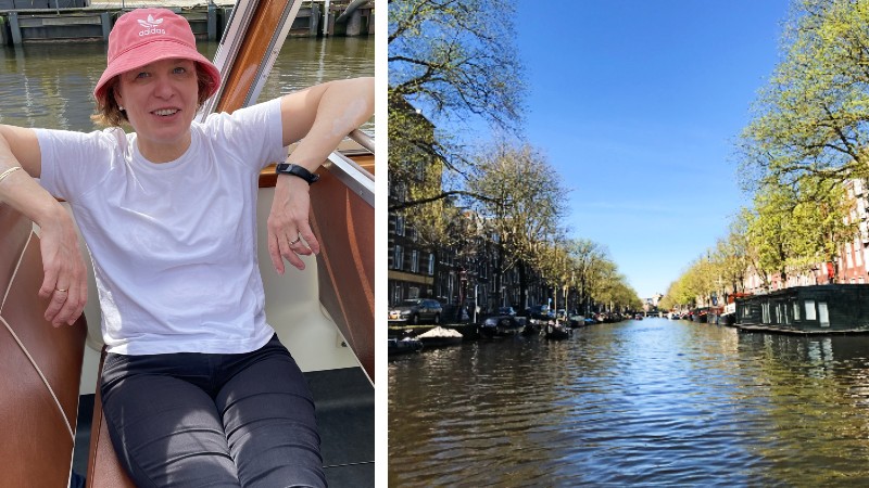 Om du ikke har vært på det før, er en båttur på kanalene obligatorisk. Dette er kanskje den aller beste måten å se Amsterdam på. Skipet vårt er nok for stort til å bruke inne i byen. Små spesialbåter frakter oss, og logistikken er upåklagelig.