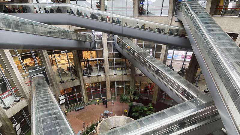 Vi fløy til Charles de Gaulle-flyplassen, Terminal 1 i Paris. Den ikoniske terminalen, kjent for sin futuristiske arkitektur med rulleganger på kryss og tvers gjennom atriet, feirer i år femti-års jubileum.