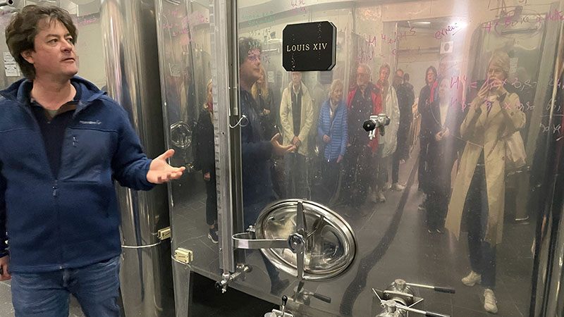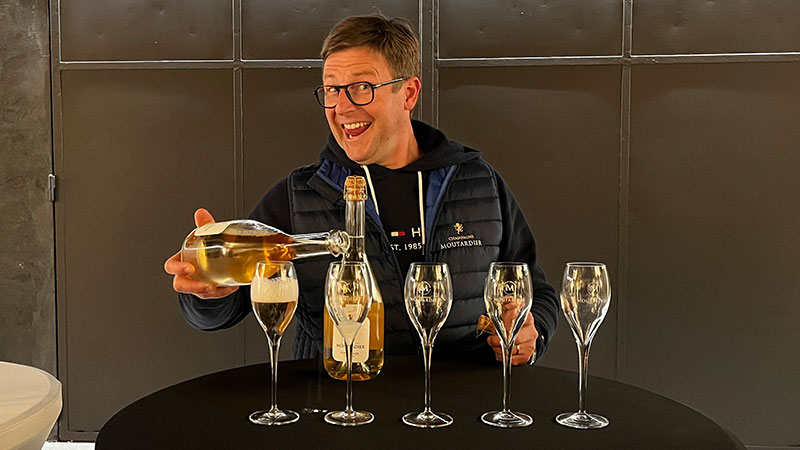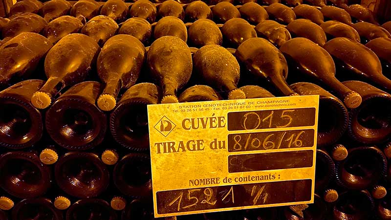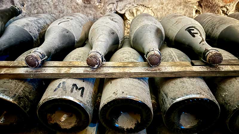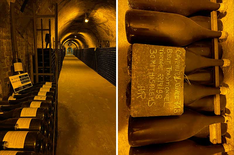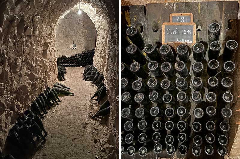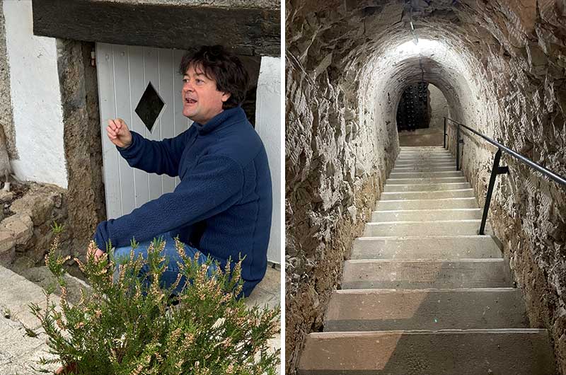 Vi fikk også en tur ned i lagringskjelleren under huset hans – en liten labyrint av små rom og ganger over to etasjer med champagneflasker i hver krinkel og krok. Etterpå var det igjen tid for litt bobler i glasset...