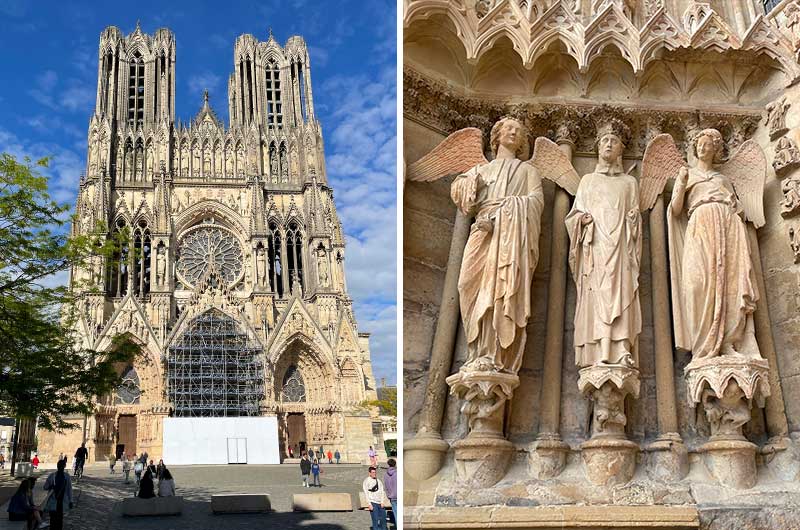 Dagens fellesprogram ble avsluttet med et besøk i Notre-Dame katedralen i Reims. Den gotiske katedralen ble påbegynt i 1211 og var fransk kroningskirke frem til 1825. Ved inngangen til katedralen titter den den smilende engelen (L’Ange au Sourir) ned på alle besøkende (statuen helt til høyre). Den storslåtte katedralen like imponerende innvendig som utvendig. I katedralens apsis, bak hovedalteret, kan man blant annet se tre vakre glassmalerier laget av Marc Chagall på 1970-tallet.