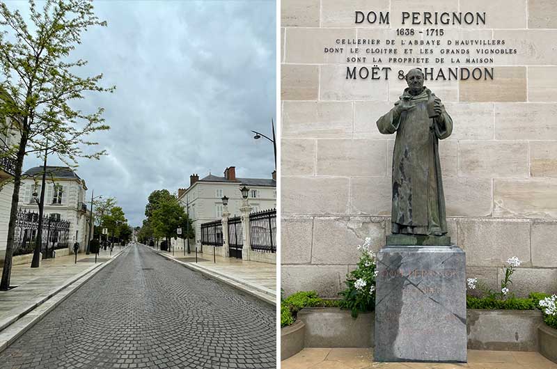 Möet et Chandon og Perrier-Jouët er blant de mest kjente champagneprodusentene langs Avenue de Champagne, men her er det også flere mindre champagnehus. Tar man en rusletur langs gaten er det mange steder man kan sette seg man kan sette seg ned og nyte ett glass champagne. Foran hovedbygningen til til Moët & Chandon, står en statue av Dom Pérignon.