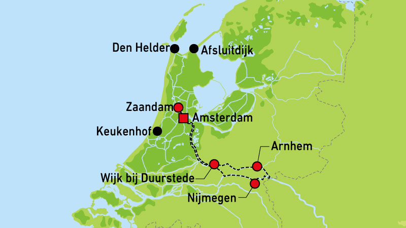 Et blomstercruise på nederlandske elver og kanaler er en fin måte å ønske våren velkommen. Nederland er kanskje best kjent for tresko, tulipaner, vindmøller og ost, men landet har mye mer å by på. På denne tiden av året er de store tulipanåkrene et fargerikt skue det ikke finnes maken til. Sjarmerende Amsterdam, blomsterauksjonen i Aalsmeer og den verdensberømte blomsterparken Keukenhof er noe av det du kan se frem til på denne turen.
