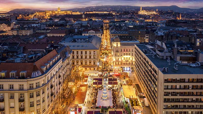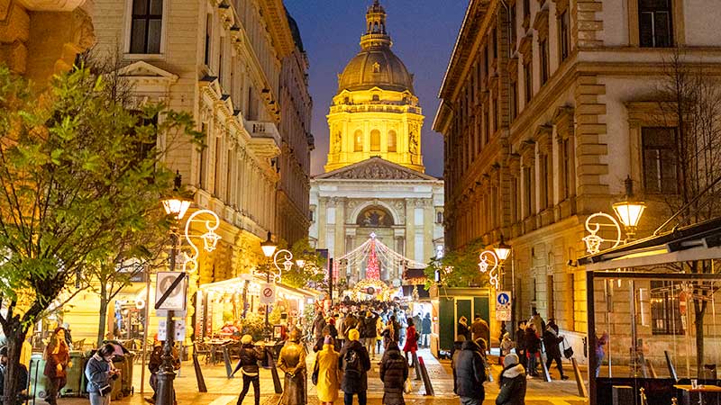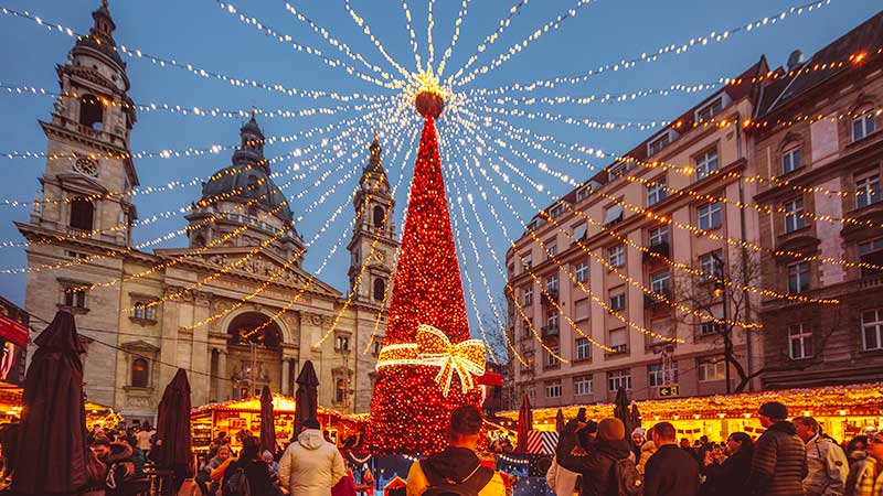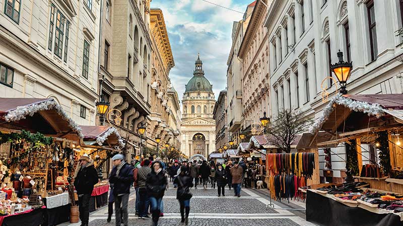 I førjulstiden forvandles Budapest til et vintereventyr med funklende lys og store og små julemarkeder. Det største og mest populære markedet ligger på Vörösmarty-plassen, i hjertet av byen. Her finner du julepynt, gaver, suvenirer og lokal mat. Basilica Budapest er et annet populært marked. Det ligger foran St. Stefan-basilikaen og er kjent for sitt store utvalg av håndverksprodukter og vakre beliggenhet med basilikaen som bakteppe. Midt i markedet er det en liten skøytebane.