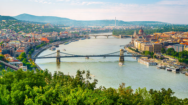 - Budapest med sine flotte bygninger langs elven