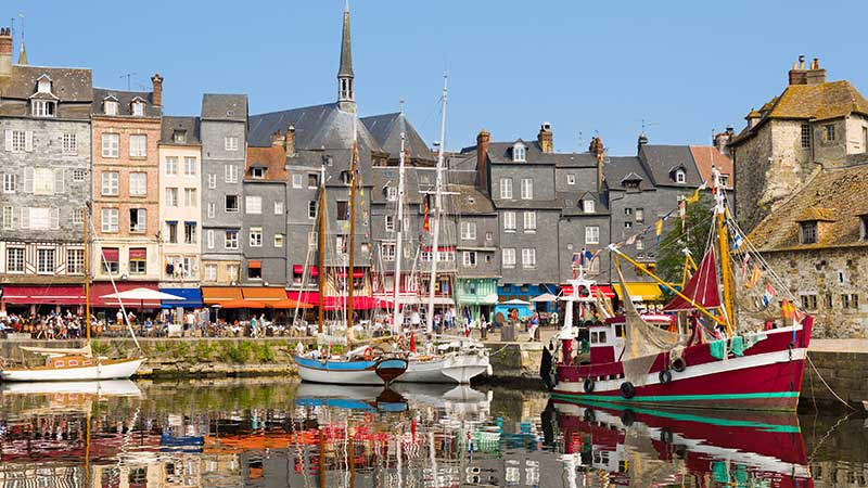 - Utflukt til Honfleur: Honfleur regnes for å være en av de mest pittoreske byene langs nordkysten av Frankrike. Den gamle havnen, med ly for både fiskebåter og luksuriøse fritidsfartøyer, er godt bevart og omgitt av pastellfargede hus fra 1500- til 1700-tallet. Se talentfulle kunstnere forevige den fascinerende utsikten langs vannkanten. Byvandringen tar dere gjennom de smale og svingete gatene bak den gamle havnen. Her ligger mange sjømatrestauranter og tradisjonelle butikker som selger antikviteter, bøker og lokale delikatesser.