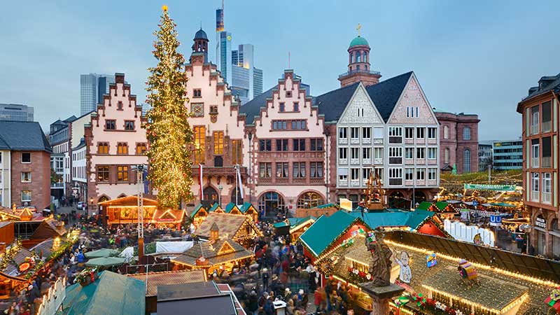 Julemarkedet i Frankfurt er et av de største og eldste i Tyskland, og strekker seg fra Hauptwache til plassen foran Paulskirche, videre til Römerberg og helt ned til Main-elven. Tysklands største juletre står foran rådhuset på Römerberg. Regionale spesialiteter du finner på julemarkedet inkluderer småkakene Brenten og Bethmännchen, samt Quetschemännchen, små figurer laget av tørket frukt og nøtter. I gamle dager var det en tradisjon for unge menn å sende en Quetschemännchen til en jente de var forelsket i. Enten beholdt hun den, eller så sendte hun den tilbake. Beholdt hun figuren, var det et tegn på at kjærligheten var gjengjeldt.