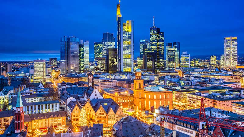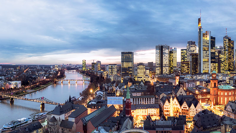 Frankfurt am Main er kanskje først og fremst er kjent for å være Tysklands finansielle hovedstad. Bybildet domineres av høyhusene og skyskraperne i Bankenviertel (bankkvartalet), som på folkemunne kalles Mainhatten fordi det minner om skyskraperne i New York. Den historiske bykjernen (Altstadt) ble kraftig bombet under andre verdenskrig, men er møysommelig gjenoppbygd. Det gjelder også det vakre rådhuset, der Römer, fra 1405, og bindingsverkshusene som omkranser Römerberg, den gamle markedsplassen. Et par kvartaler unna ligger katedralen, som i over to hundre år var kroningskirke i det tysk-romerske riket.