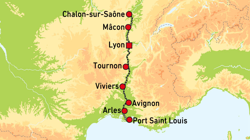 Bli med på et 10-netters cruise til Bourgogne og Provence - områder kjent for sine gode viner, pittoreske landsbyer og monumenter fra romertiden. Vårt utgangspunkt er storbyen Lyon, der elvene Saône og Rhône møtes. Cruiset går først nordover på Saône til Chalon og Mâcon i vindistriktet Bourgogne. Deretter seiler vi sørover på Rhônen helt ned til Middelhavet med besøk underveis i de tidligere romerske byene Arles og Avignon. På vei fra den ene interessante byen til den andre, nyter vi det gode livet om bord på elegante VIVA Voyage, hvor både drikkevarer og tips er inkludert.