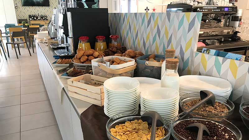 I hovedbygningen er det resepsjon, restaurant, bar og en takterrasse med stoler og parasoller. Restauranten er åpen til både frokost og middag. Daglig frokostbuffet er inkludert i prisen. Meny til middag er både stor og varierende.