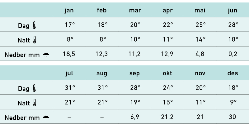 Gjennomsnittstemperaturer og nedbør