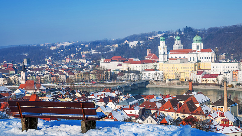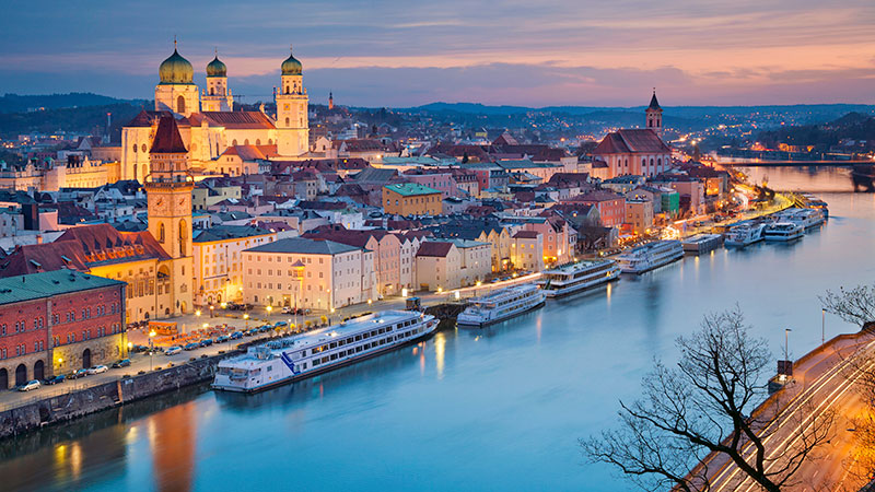 - Passau, som ligger der tre elver møtes