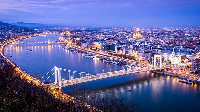 - Budapest med sine storslåtte bygninger langs elven