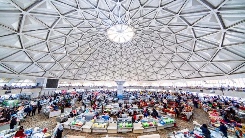 Ingen besøk til Tasjkent er komplett uten en tur innom det berømte markedet Chorsu, byens største basar. Under den blåfargede kuppelbygningen vil du ha litt tid til å oppleve den livlige markedstemningen og dagliglivet i Usbekistan.